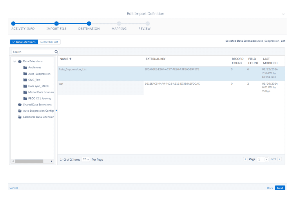 - Go to Data Extensions > Auto-Suppression Configuration folder > Auto-Suppression List.