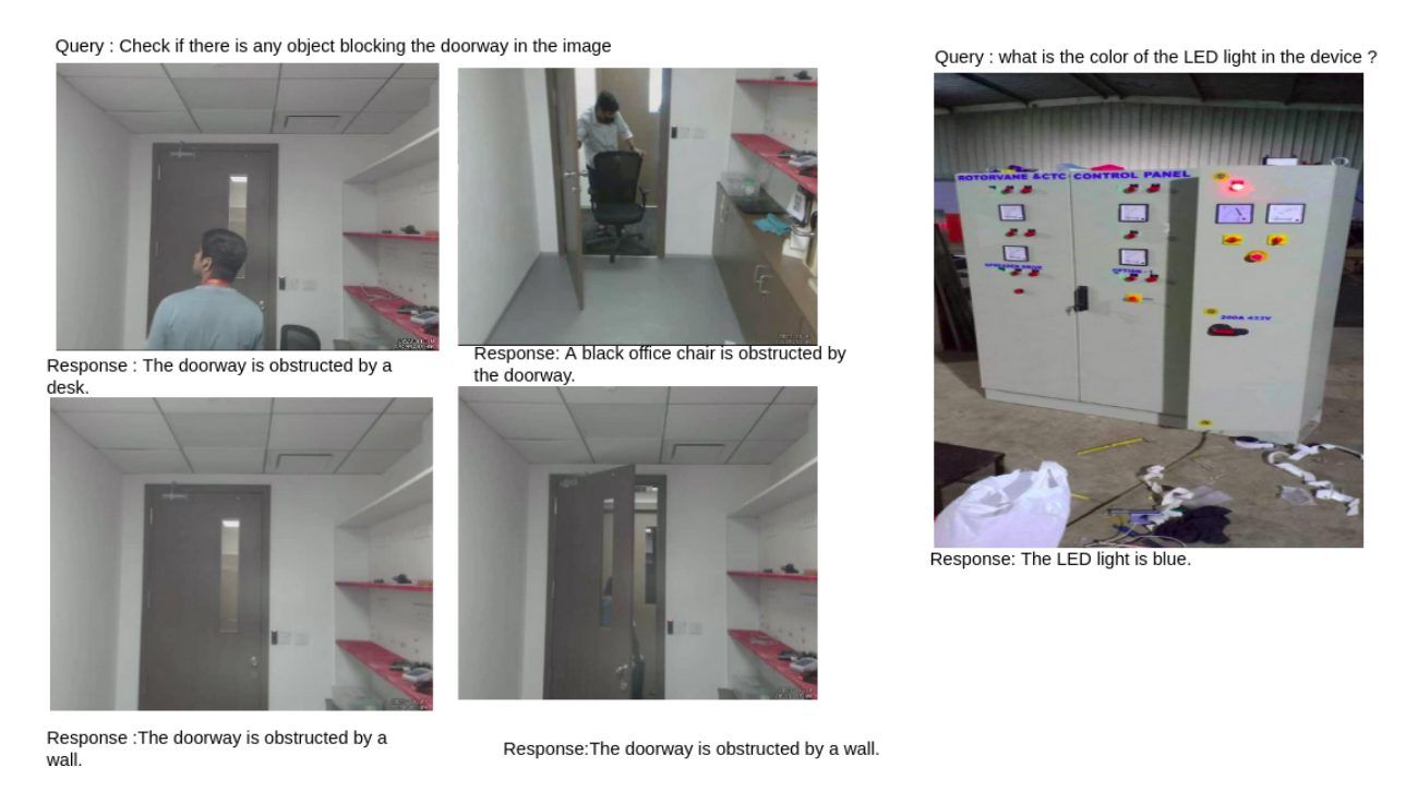 While all models showed high precision—indicating that they handle true positive scenarios well (correctly identifying a red LED light or a blocked door)—most, except for MiniCPM-V 2.0, exhibited low recall. This means that the models could misclassify an unblocked doorway as blocked or a differently colored LED as red. In contrast, our custom CNN model showed high precision and recall, outperforming the vision-language models.