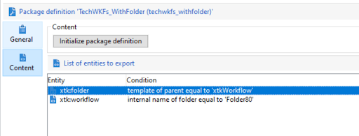 The specific condition to identify the selected component will be added automatically in the package definition. This is useful in case you want to export a set of workflows or schemas. You can create the package definition and add the components from their respective sections.